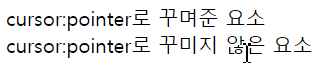 cursor:pointer로 꾸며주지 않은 요소는 다음과 같이 보입니다.